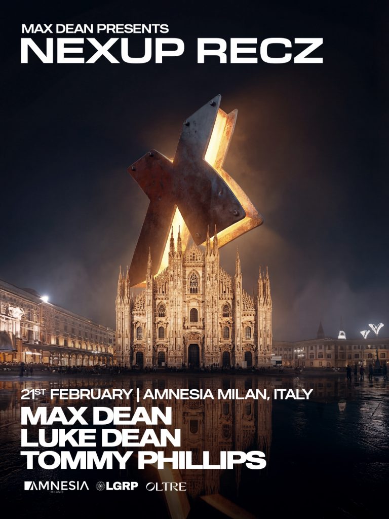 February 2026Saturday 21st: one of the hottest parties of the moment lands in Amnesia Milano for the first time: NEXUP RECZ, by and with Max Dean, joined on this occasion by Luke Dean and Tommy Phillips. Another night to be remembered, an important new chapter for a club like Amnesia Milano, which this season has been completely renovated with a top-of-the-line L-Acoustic system, a 360° LED wall, and a new lighting design.